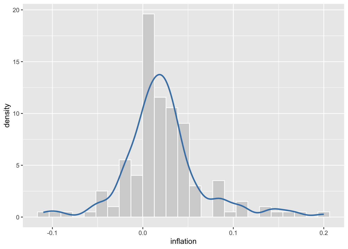 Understanding distributions is crucial in economics. The distribution of inflation rates tells you not just the average inflation, but how variable inflation has been and whether extreme episodes (like hyperinflation or deflation) are common or rare. Income distributions reveal inequality—a right-skewed distribution indicates many low earners and fewer high earners. Comparing distributions across groups or time periods can be revealing: has the distribution of unemployment rates become more or less dispersed since the 1980s? Overlaying density plots for different eras on the same axes makes such comparisons visually intuitive. The shape of a distribution also informs statistical analysis—many techniques assume normally distributed data, and these plots help you assess whether that assumption is reasonable.